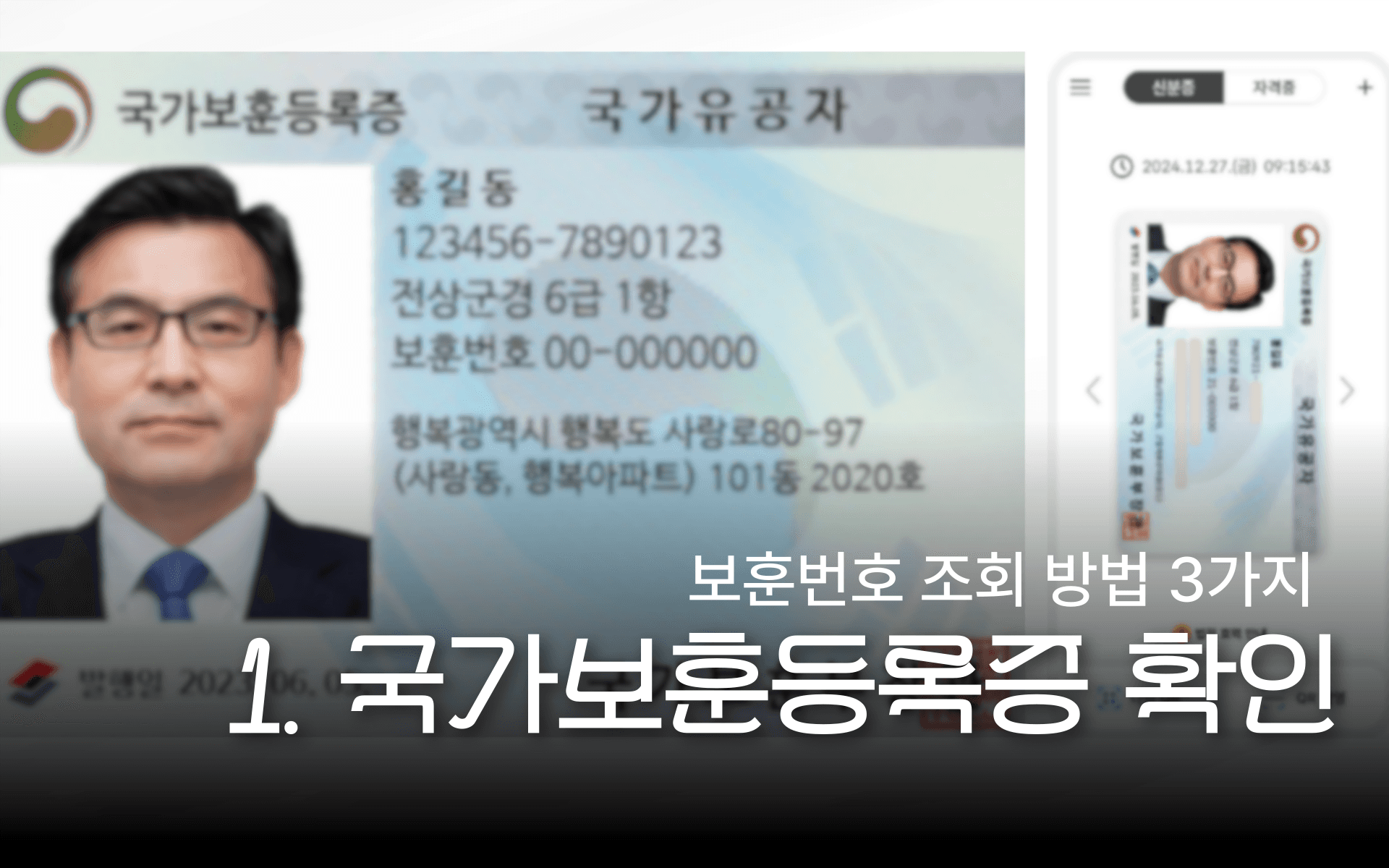 가장 쉬운 방법은 본인이 소지한 국가보훈등록증 실물 카드 또는 모바일 신분증 앱을 확인하는 것입니다.
